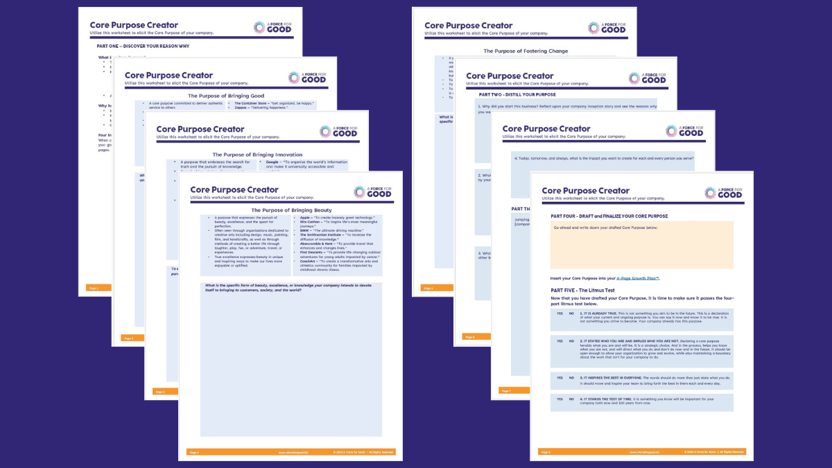 The Core Purpose Kit fixes that. It helps you articulate why your company exists and the unique change you're here to create. With this clarity: